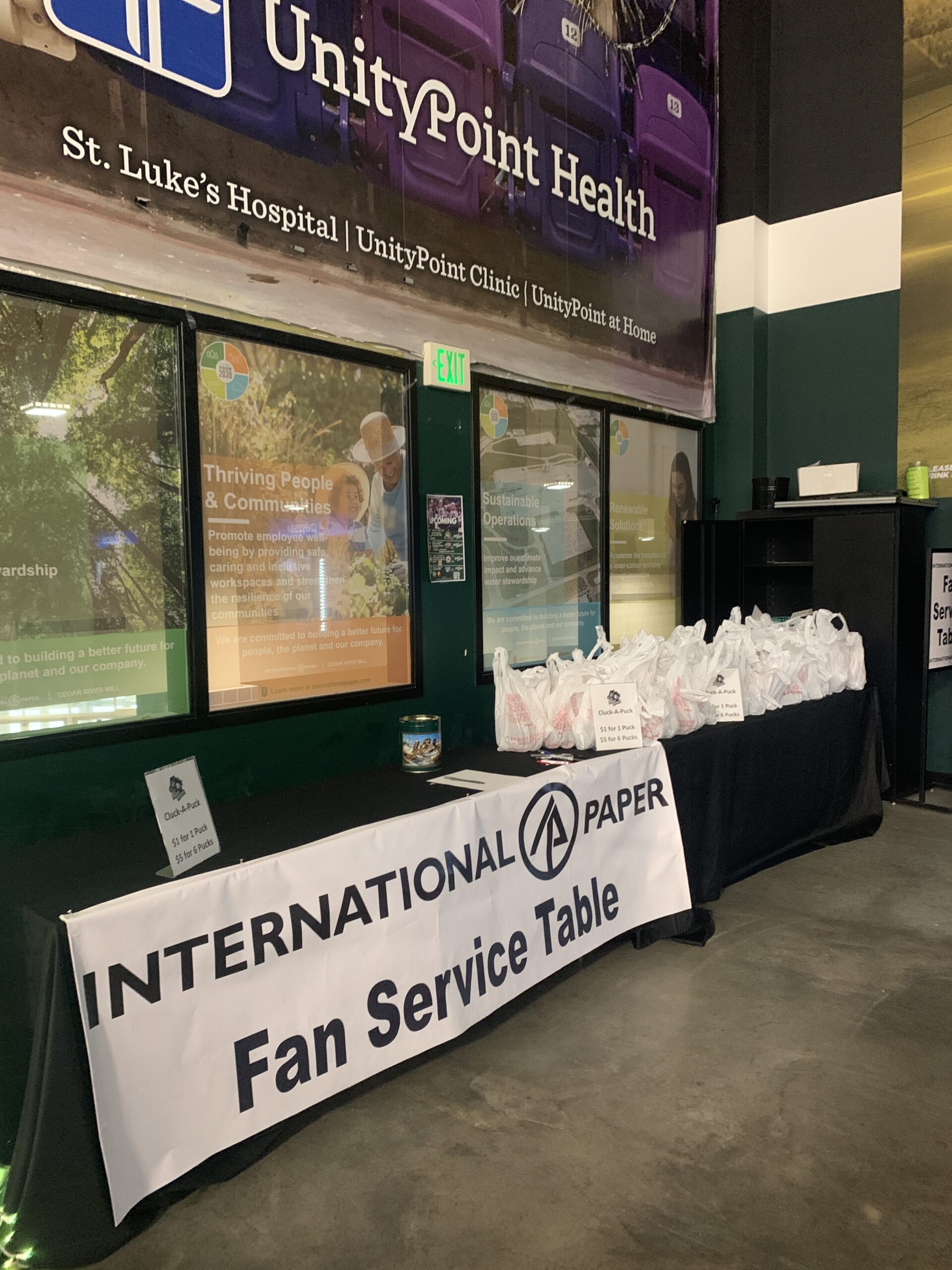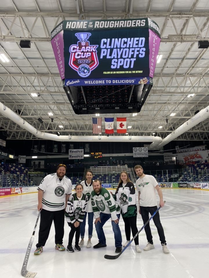 Meine zweite Volunteer Tätigkeit mache ich bei einem lokalen Eishockeyverein, den Cedar Rapids RoughRiders. Bei allen Heimspielen bin ich mit anderen Praktikanten dafür zuständig, dass im Hintergrund alles glatt läuft. Wir bereiten die Spiele für die Spielpausen vor, geben Informationen zu dem Verein oder den Spielern und verkaufen Chuck-A-Pucks (für das Spiel in der zweiten Pause). Dabei werden verschiedene Schilder in die Mitte der Eisfläche gelegt und die Zuschauer können ihre zuvor erworbenen Pucks auf Eis werfen. Der Puck der jeweils am nächsten an der Mitte eines Schildes liegt gewinnt einen Preis. Durch diese Tätigkeit habe ich auch meine Liebe zum Eishockey gefunden, es macht einfach super viel Spaß zu zuschauen. Aber auch die Arbeit hinter den Kulissen hat mir einen einmaligen Einblick in den Bereich Sportmanagement gegeben.